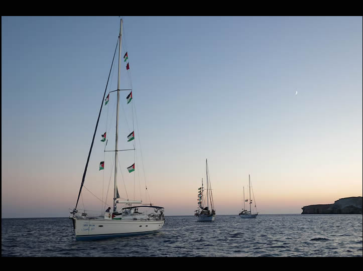 El viaje de la flotilla, compuesta por más de 40 barcos, fue transmitida a través de redes sociales, en la que se pudo constatar el momento en el que les piden que se detengan, alcen las manos y apaguen los motores.