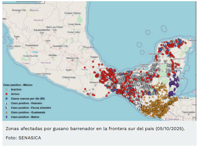 De acuerdo con el Servicio Nacional de Sanidad, Inocuidad y Calidad Agroalimentaria, hasta septiembre 2025 se han reportado más 6 mil casos