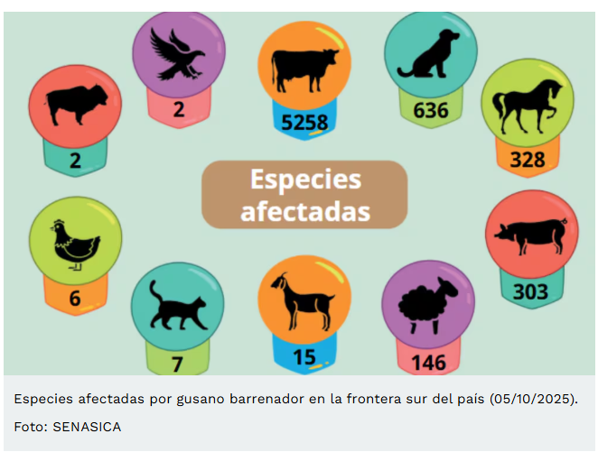 Especies afectadas por gusano barrenador en la frontera sur del país (05/10/2025). Foto: SENASICA