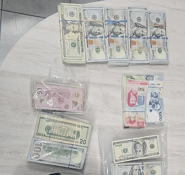 Tras revisarlos, les confiscaron los $155 mil dólares y $135 mil pesos, cuya procedencia no pudieron acreditar, por lo que quedaron detenidos y puestos a disposición de un juez.