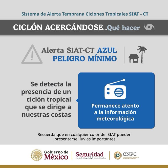 Ante la llegada de este meteoro, la Coordinación Estatal de Protección Civil de Sonora estableció una alerta azul para los siguientes 15 municipios: