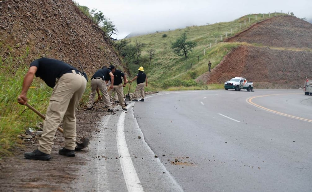 En el tramo Bacanora-El Novillo se reportan deslaves, aunque el tránsito vehicular continúa fluyendo con precaución en la zona donde trabaja personal de seguridad y mantenimiento vial.