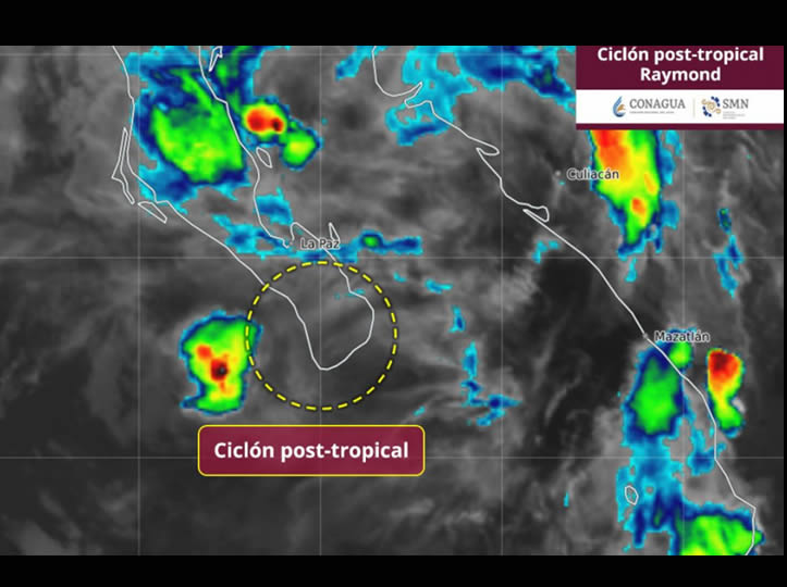 El ciclón tropical Raymond se degradó a ciclón post-tropical tras tocar tierra en el sur de Baja California Sur, informó el Servicio Meteorológico Nacional (SMN) de la Comisión Nacional del Agua (Conagua).