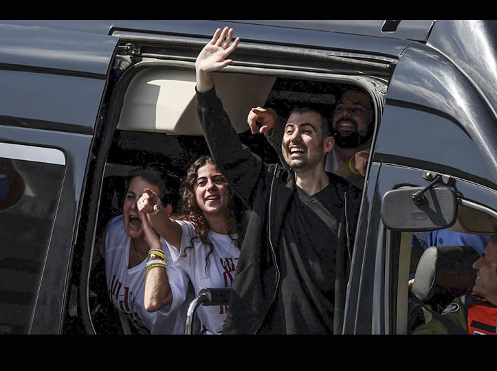 Según el plan previsto, los rehenes fueron entregados a la Cruz Roja dentro del enclave palestino, que los trasladó al Ejército israelí. Este, a su vez, los llevó a la base militar de Reim, situada junto a la frontera con Gaza, en territorio israelí, donde recibieron atención médica y pudieron reunirse con sus familias.