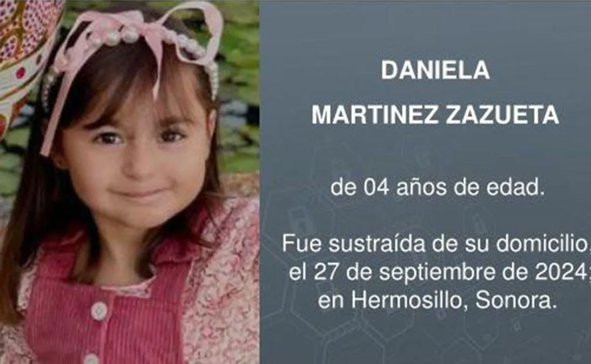 La Fiscalía General de Justicia del Estado de Sonora (FGJE) emitió una Alerta Amber urgente para localizar a Daniela Martínez Zazueta, una menor de 4 años reportada como desaparecida desde el pasado 27 de septiembre en Hermosillo. Las autoridades consideran que la integridad física de la niña podría estar en riesgo debido a que fue sustraída de su domicilio en la colonia Olivares de la capital sonorense, por lo que se solicita la máxima colaboración ciudadana para dar con su paradero.