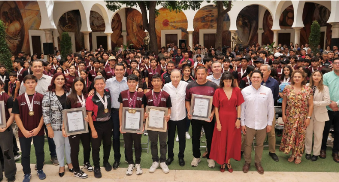 Ayer, en el patio central de Palacio de Gobierno estaban todos los jóvenes atletas que compitieron en diversas disciplinas; sus entrenadores y sus padres y madres con el pecho henchido de orgullo escuchando las palabras del gobernador que entregó estímulos económicos por cinco millones 718 mil pesos para 139 atletas y entrenadores.