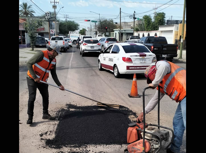 Durante el horario nocturno, las cuadrillas laboraron en Vildósola, entre Callejón Rosales y Avenida de la Cultura; en Michoacán entre Manuel Loaiza y Benjamín Hill; así mismo, en Simón Bley entre Campeche y Tabasco, en colonia Olivares; y en Sierra del Bachoco entre Ignacio Soto y Yocupicio.