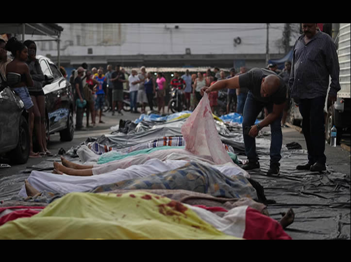 El hospital Getulio Vargas, el más cercano al epicentro de la batalla, empezó a recibir heridos, tanto uniformados como sospechosos. Al caer la noche, las autoridades de Río anunciaron un primer balance oficial: 64 muertos. La mayor matanza policial de la ciudad.