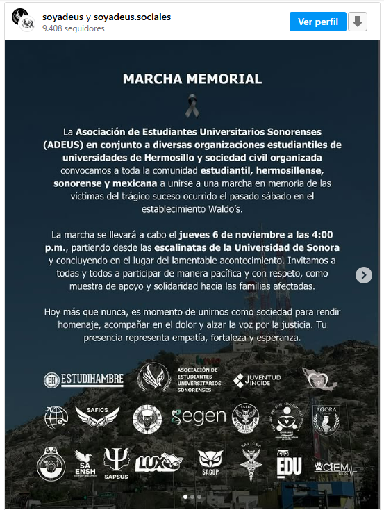 En un comunicado, los integrantes informaron que el acto busca rendir homenaje a las víctimas, acompañar a las familias y expresar unidad como sonorenses ante la tragedia.
