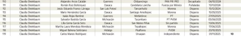 Alcaldes asesinados en el sexenio de Claudia Sheinbaum Pardo