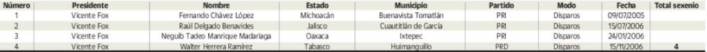 Alcaldes asesinados en el sexenio de Vicente Fox