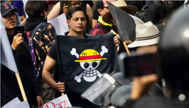 Pero el asunto luce más complicado. La convocatoria detonó con el asesinato del alcalde de Uruapan, Carlos Manzo cuyo sombrero se ha convertido en símbolo de un movimiento que la semana pasada tomó el palacio de gobierno de Morelia, Michoacán y en Uruapan, y congregó a decenas de miles de ciudadanos hartos de la violencia del crimen organizado. Curiosamente la bandera de la Generación Zeta es una calavera pirata con un sombrero de paja, tomada de un anime que entre otras cosas es el más vendido en la historia en sus productos para jóvenes entre los 15 y 35 años: series de televisión, animes y videojuegos.