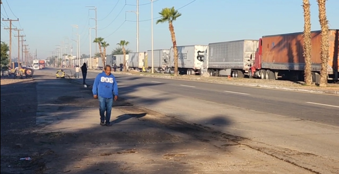 Sonora.- El bloqueo carretero que mantienen agricultores y transportistas en las inmediaciones del Valle de Mexicali ha ocasionado un caos en la zona de la frontera entre los estados de Sonora y Baja California.