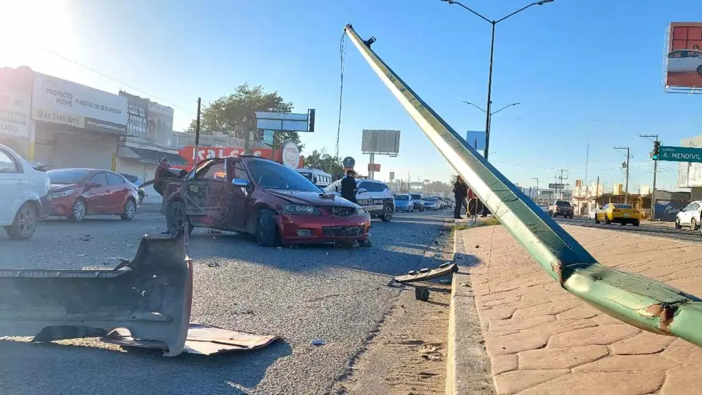 Un aparatoso choque de un vehículo contra un poste de alumbrado público se registró la mañana de este miércoles en el bulevar Solidaridad a la altura con la avenida Yécora, del norte de Hermosillo, lo que provocó un caos vial.