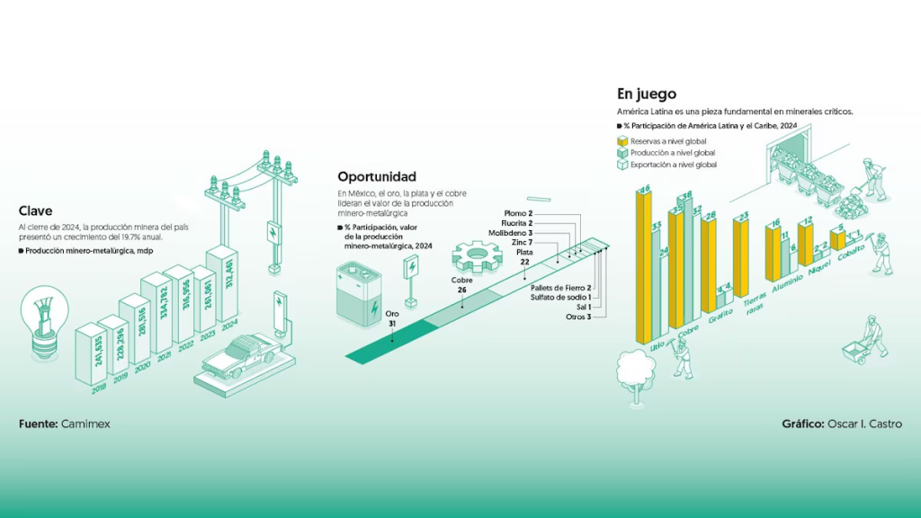 En el caso de México, las reservas de metales como plata, cobre y manganeso son prometedoras, pero el gran problema es la ausencia de una lista oficial y de políticas públicas alineadas con industrias estratégicas como la automotriz, aeroespacial o eléctrica.
