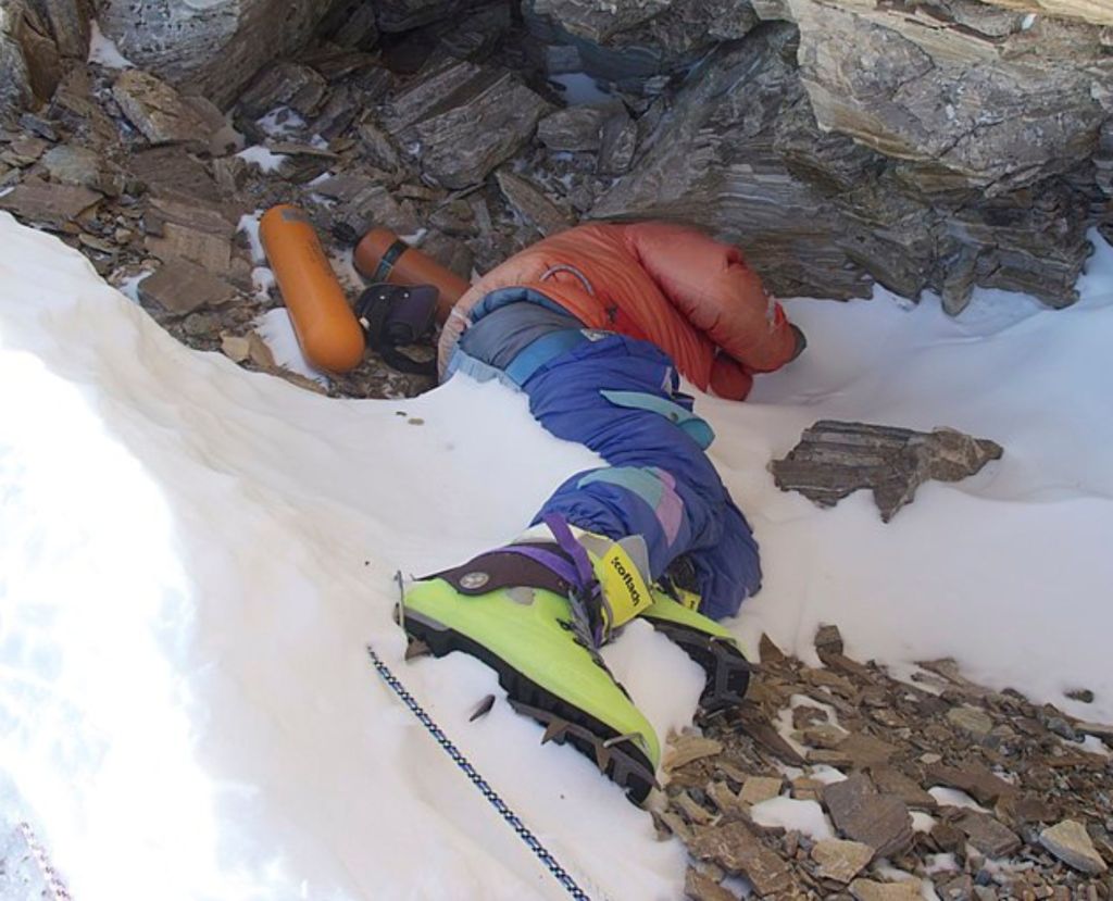 Desde 1997 yace un cadáver que parece que está saludando. Es de los primeros que pueden verse en la ascensión al Everest. Hay muchos otros cadáveres a lo largo del recorrido, algunos llevan más de 40 años allí. Y siguen en casi perfecto estado.