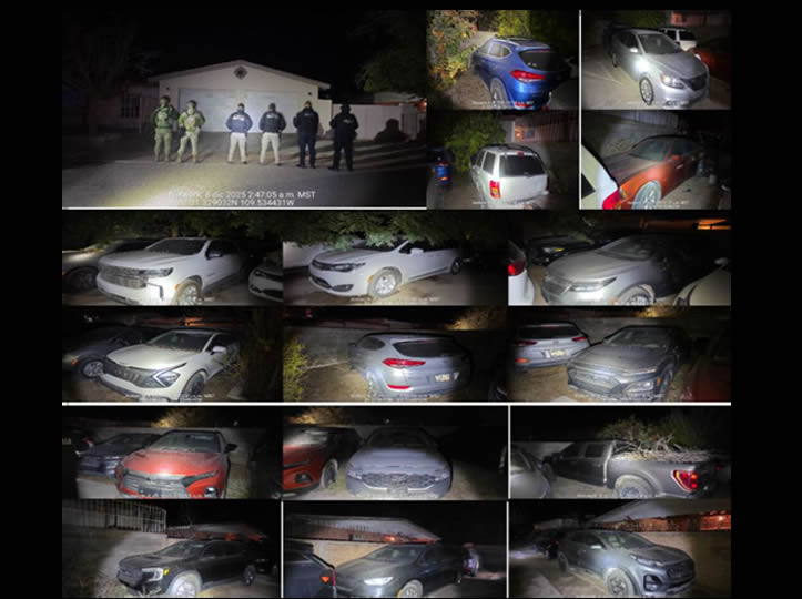 Durazo asestó un golpe contundente a células criminales en Agua Prieta tras un operativo coordinado que resultó en el aseguramiento de 24 vehículos, 18 con reporte de robo en EE. UU., incluyendo unidades blindadas y un vehículo “monstruo”.