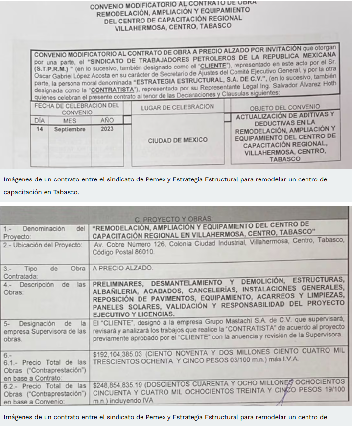 Entre enero de 2016 y marzo de 2025, el Sindicato de Trabajadores Petroleros de la República Mexicana (STPRM) otorgó contratos por 544.5 millones de pesos a Estrategia Estructural S.A. de C.V., una firma vinculada con una empresa de la familia del secretario general de esta organización, Ricardo Aldana Prieto.