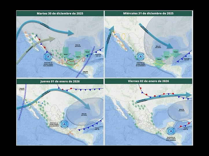 Hermosillo, Sonora.- El frente frío número 25 que circula en Sonora provocará bajas temperaturas, caída de aguanieve, cielo nublado, vientos de 60 kilómetros por hora y lluvias ligeras en diferentes regiones de la entidad durante los días martes 30 y miércoles 31 de diciembre.