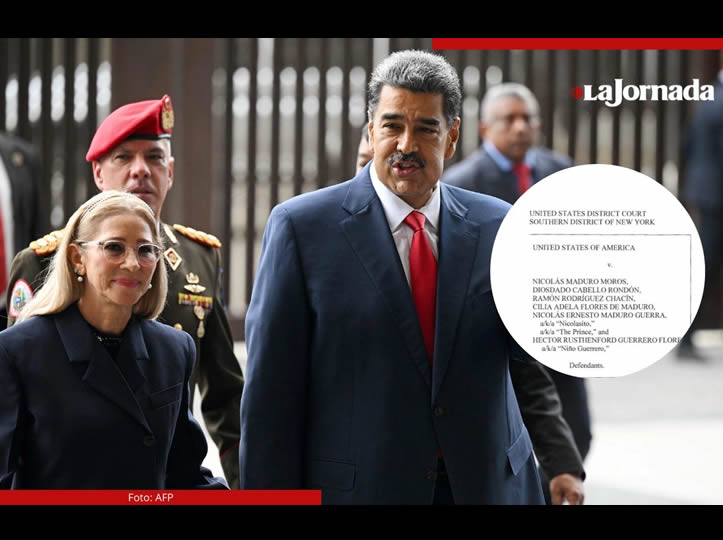 Estados Unidos. El presidente de Venezuela, Nicolas Maduro, es acusado formalmente por los supuestos delitos de narcotráfico, terrorismo, conspiración y usos de arma de guerra. La acusación penal formal presentada por un Gran Jurado Federal de Estados Unidos, en la Corte del Distrito Sur de Nueva York, involucra también a otros personajes del círculo cercano del presidente Maduro como: Diosdado Cabello, Cilia Flores (esposa de Maduro), Nicolás Ernesto Maduro (su hijo) y Héctor Niño Guerrero, supuesto líder del Tren de Aragua.