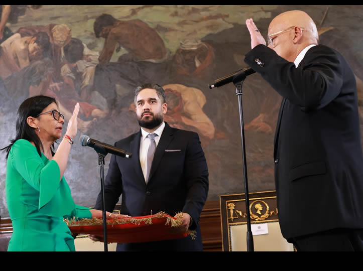 Rodríguez, una abogada laboral de 56 años, conocida por sus vínculos con el sector privado, juró ante su hermano Jorge Rodríguez, presidente de la Asamblea Nacional, en un acto en la sede del Parlamento.