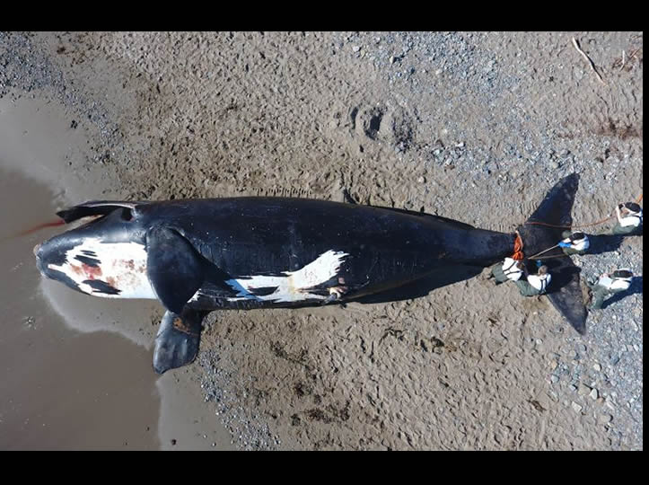 Respecto de 44 necropsias realizadas a ballenas francas entre 2003 y 2018, 38 ejemplares (es decir, 88 por ciento), murieron por causas antropogénicas, concretamente colisiones con embarcaciones y enmallamiento en artes de pesca. De 2018 a la fecha, al menos 49 ballenas francas han muerto o resultado gravemente heridas debido a colisiones con embarcaciones y enmallamiento en artes de pesca”