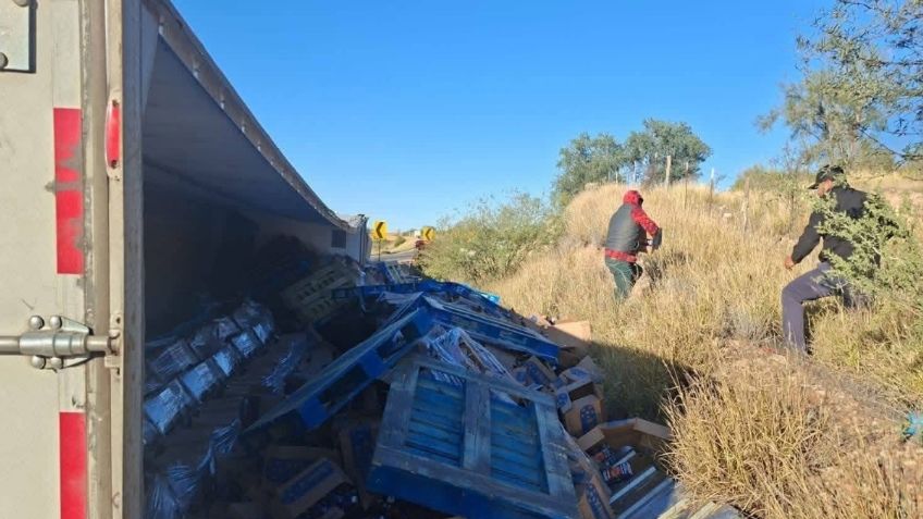 La mañana de este lunes 12 de enero un tráiler que transportaba cajas de jugo se volcó en la carretera de Sonora, donde las personas que pasaron por el lugar realizaron un acto de rapiña, mientras el conductor quedó lesionado.
