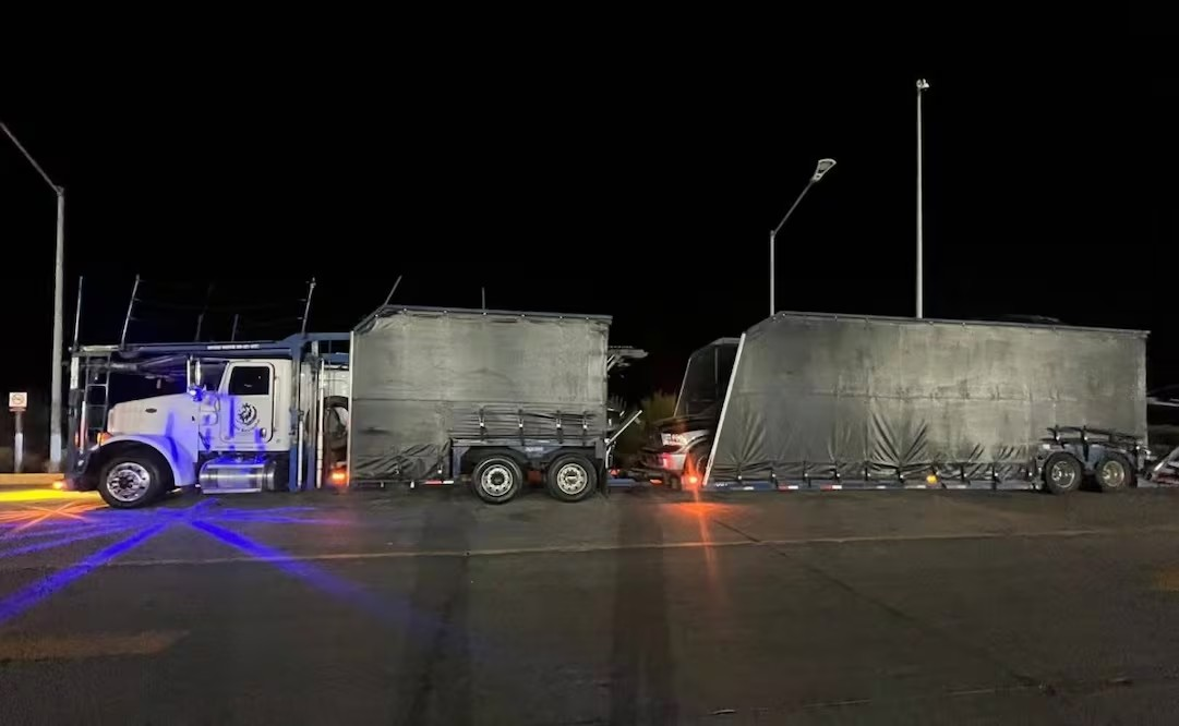 Aseguran tractocamión que trasportaba 6 autos con reporte de robo en Sonora; también trasladaba arsenal