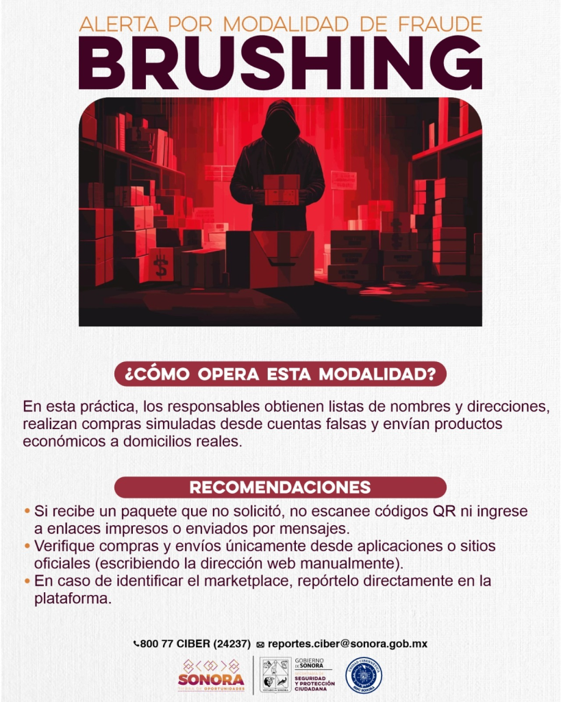 HERMOSILLO, SONORA. — La Secretaría de Seguridad y Protección Ciudadana (SSPC) de Sonora, a través de su Unidad Cibernética, ha lanzado una alerta preventiva ante el surgimiento del “Brushing”, una táctica fraudulenta donde ciudadanos reciben paquetes que nunca solicitaron en la puerta de su hogar.