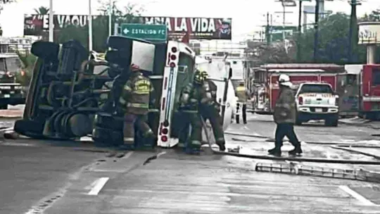 De acuerdo con información de la Policía Municipal, elementos de Tránsito mantienen cierres y desvíos en la zona mientras el Departamento de Bomberos realiza maniobras para asegurar el lugar y evitar cualquier riesgo por posible fuga de combustible.