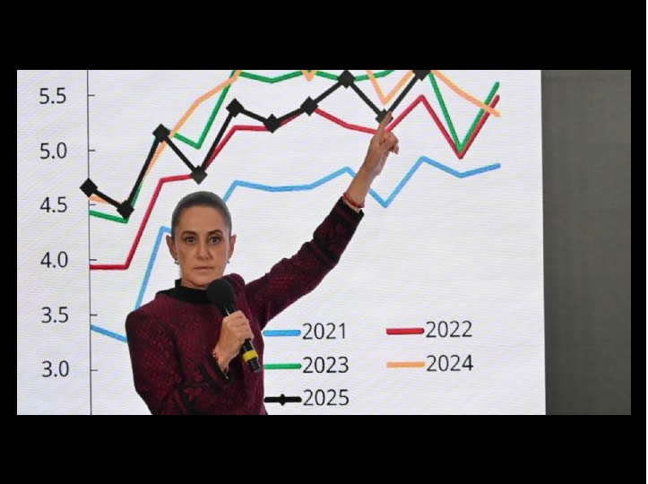 CIUDAD DE MÉXICO (apro).-En los primeros once meses de 2025, el desempeño de la economía en la administración de Claudia Sheinbaum Pardo superó a los de Vicente Fox Quesada y de Andrés Manuel López Obrador, pero quedó por debajo del desempeño registrado en el arranque de los gobiernos Enrique Peña Nieto y de Felipe Calderón Hinojosa.