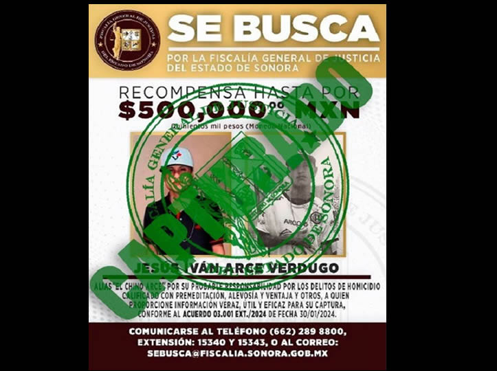Hermosillo, Sonora.- Jesús Iván, alias “El Chino Arce”, por quien se ofrecía una recompensa por 500 mil pesos desde el año 2024, fue capturado en Ciudad Obregón por elementos de la Agencia Ministerial de Investigación Criminal (AMIC), en coordinación con la Secretaría de Marina-Armada de México (SEMAR).