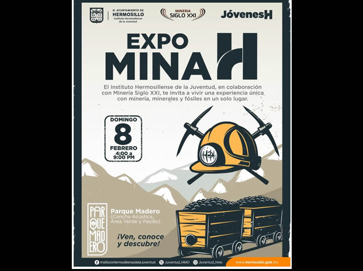 Hermosillo, Sonora; 5 de febrero, 2026.- El Instituto Hermosillense de la Juventud (IHJ), en colaboración con Minería Siglo XXI, invita a la ciudadanía a asistir a Expo Mina H, un evento de exposición y divulgación científica y tecnológica diseñado para acercar a jóvenes, familias y público en general al mundo de la minería, los minerales y los fósiles.