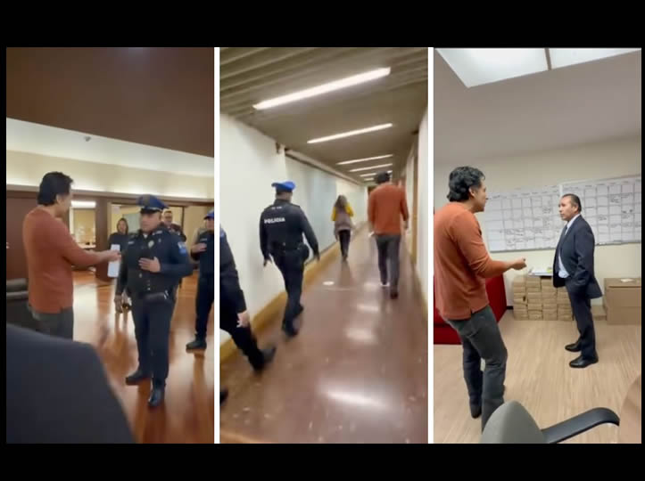 “Venga oficial… Anímese”, les dice. “Que no les dé miedo, oficiales. Están siguiendo indicaciones. Está sencillo, solo tienen que sacarme de la institución. Sigan órdenes. Esperamos, ¿no? No, no, ya esperemos, hagamos el teatro completo. Venga oficial. Mire. Anímese. Por el crimen de hacer libros de texto. Anímese. ¿O cómo va a justificar que sacó de la institución al Director General de Materiales Educativos?”, dice Arriaga en el video.