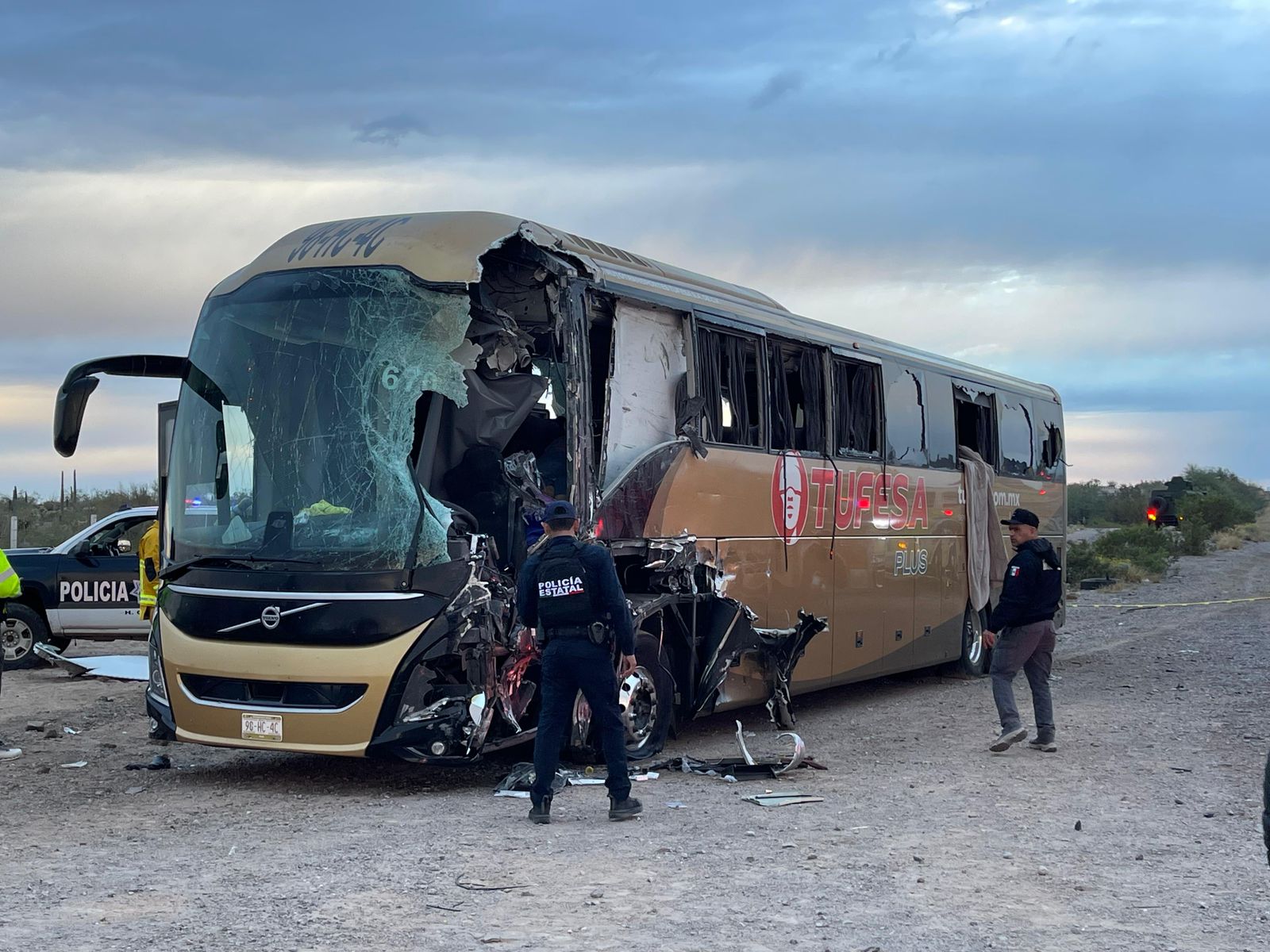 Al menos 5 muertos y 25 lesionados ha dejado un fuerte choque entre un autobús de pasajeros de Tufesa y un tráiler sobre la carretera Caborca-Sonoyta, en Sonora.