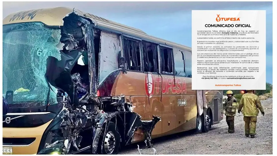 Tufesa confirma 4 muertos en camionazo en Sonora; operador está entre los heridos