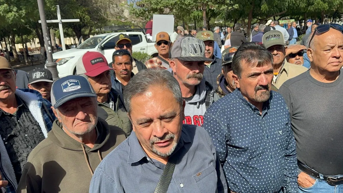 Mineros retirados derechosos del 5 por ciento de las acciones de la mina de Cananea, se manifestaron este día frente al Palacio de Gobierno en Hermosillo, para pedir la intervención de las autoridades en la búsqueda de sus derechos.