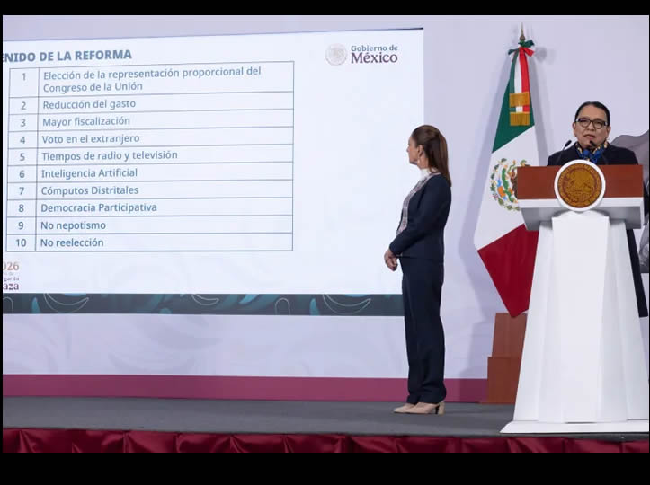 Rosa Icela Rodríguez detalló que en el caso de radio y televisión los tiempos de transmisión en periodo electoral se reducen de 48 a 35 minutos al día por emisora. Además, se regula el uso de la inteligencia artificial en campañas, y se prohíbe el uso de bots, o cualquier mecanismo que busque incidir o alterar los comicios.