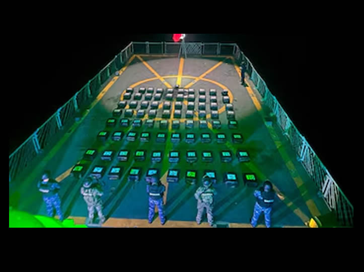 La Armada de México incautó aproximadamente dos toneladas de presunta cocaína durante una operación marítima efectuada a más de 200 millas náuticas al sur-suroeste de las costas de Acapulco, Guerrero.