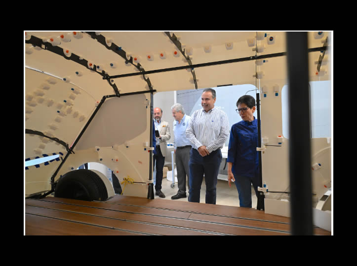 El Presidente Municipal, acompañado por Gertie Agraz, directora de Beyond Movilidad Compartida (BMC) recorrió el Show Room instalado en el Instituto Tecnológico de Hermosillo (ITH) donde se desarrolla el prototipo no funcional o “show car” del vehículo, un modelo diseñado para diversas configuraciones de uso como transporte de pasajeros o de mercancías.