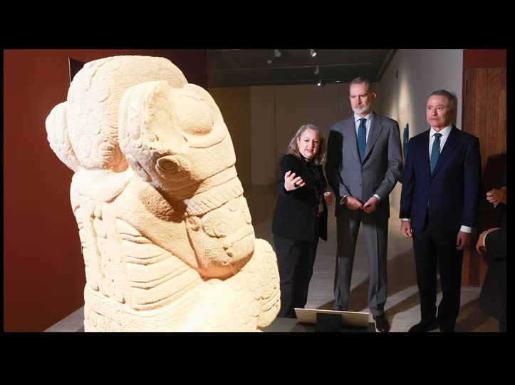 El Rey hace un gesto de acercamiento a México en su visita a una exposición sobre la mujer en las culturas prehispánicas junto al embajador de Sheinbaum en Madrid