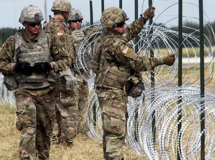 Para llevar a cabo el trabajo en el muro fronterizo, los militares colocaron alambres de púas, concertinas con navajas y otros obstáculos para limitar el acceso de personas ilegales.