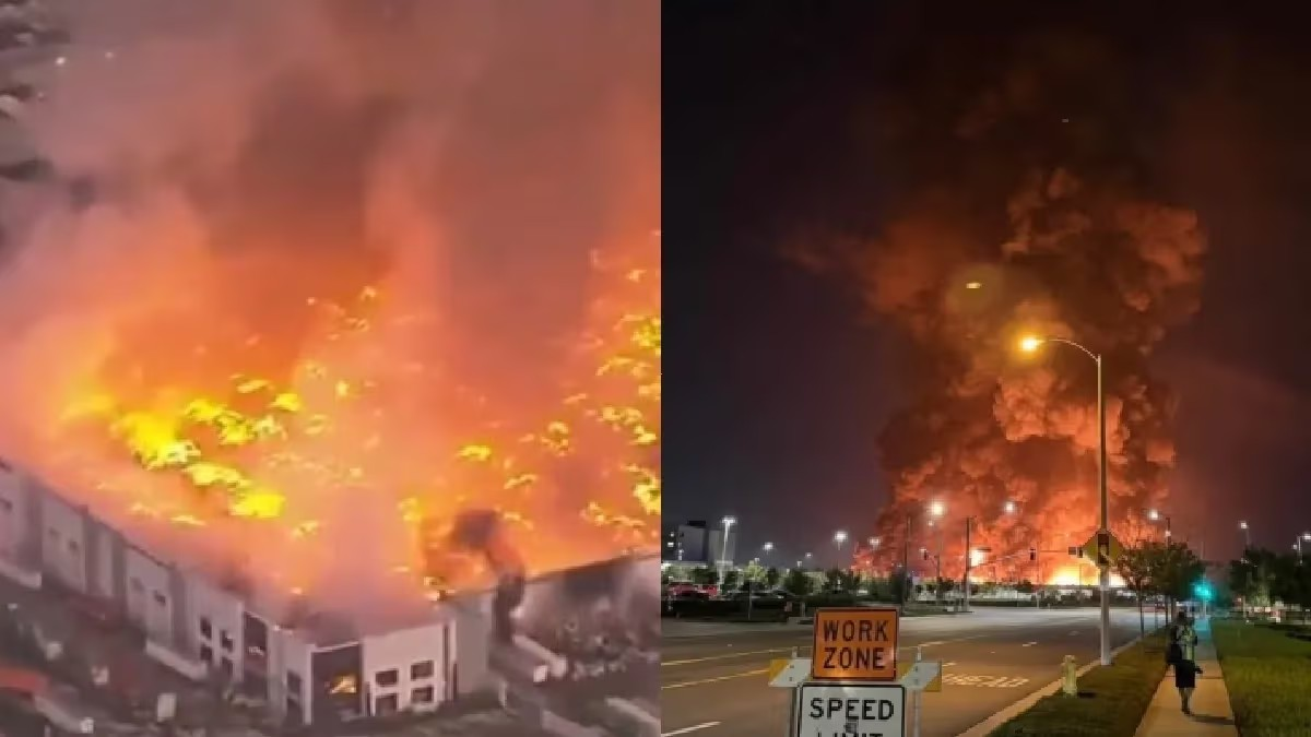 Un empleado incendió un almacén industrial por presunto descontento con su salario en California, Estados Unidos.