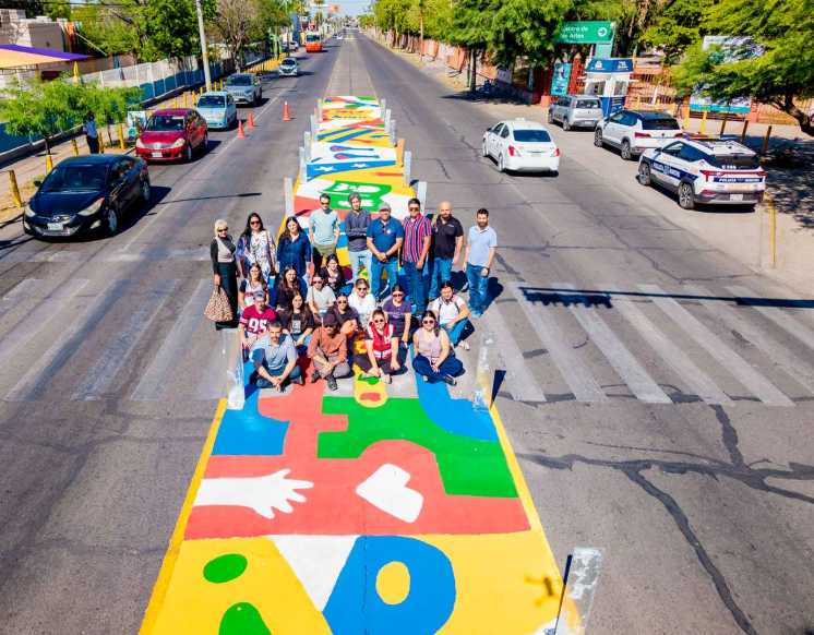 HERMOSILLO, Sonora – El Ayuntamiento de Hermosillo, en coordinación con Bloomberg Philanthropies, inició este domingo la intervención de la intersección del bulevar Luis Donaldo Colosio y la calle Galeana. La obra, realizada por el artista Enrique Chiu y 50 voluntarios, representa la primera de ocho intervenciones viales programadas para el Centro Histórico como parte del proyecto “Corredor Cultural Centenario”.