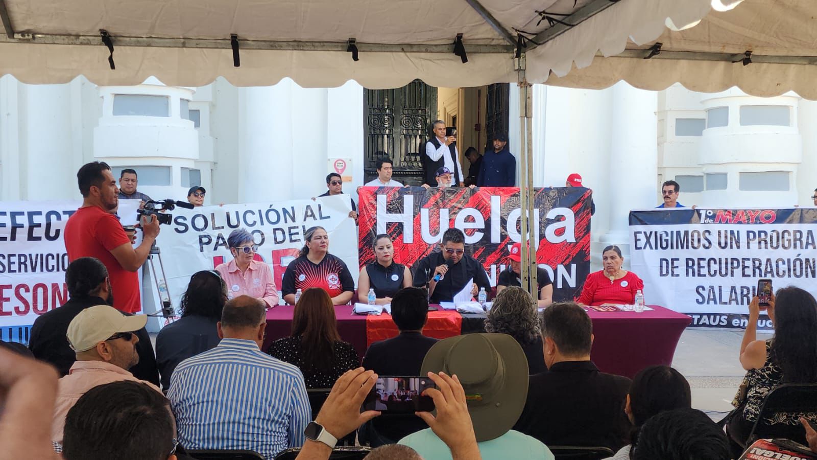 El Sindicato de Trabajadores Académicos de la Universidad de Sonora (STAUS) instaló afuera de Palacio de Gobierno, en Hermosillo, el Consejo General de Huelga, a pocos días de un posible estallamiento programado para el 30 de abril.