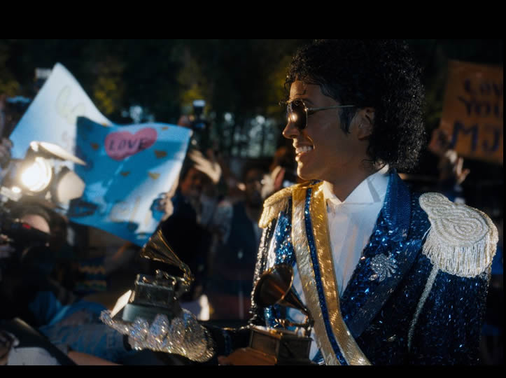 En la película, la casa es la original, al igual que la calle donde se grabó el famoso videoclip de Thriller y los Grammys que se agolpaban en sus manos en la gala de 1984.