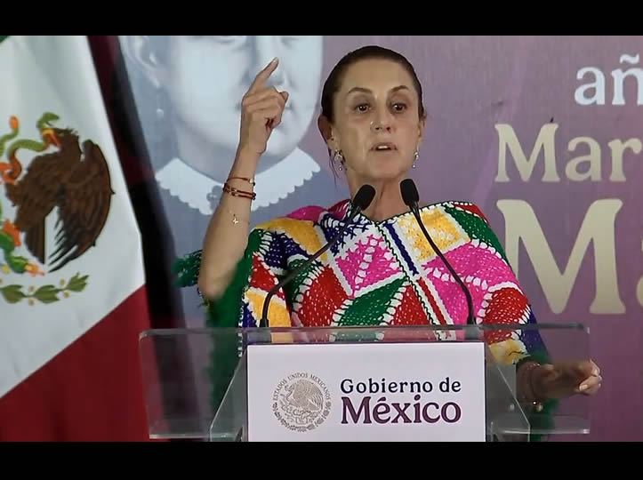 “Y ahora nos tiene que quedar claro siempre a las mexicanas y a los mexicanos: por más que algunos quieran traer la intervención, los mexicanos y las mexicanas sabemos que México es un país libre, independiente y soberano, y la patria se defiende”, añadió ante los asistentes, con quienes cerró el acto con vivas a México.