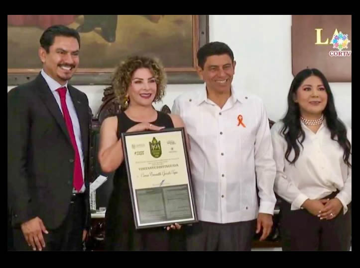 La distinción fue entregada por el gobernador del estado de Oaxaca, Salomón Jara Cruz, y el presidente municipal de la capital oaxaqueña, Ray Chagoya. Este reconocimiento destaca el trabajo que Esmeralda González ha realizado a favor de la comunidad cananense, especialmente por su visión para impulsar el turismo local y su participación activa en la construcción de alianzas regionales.